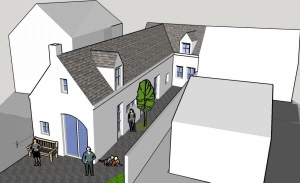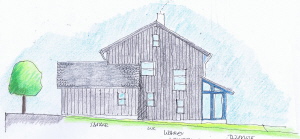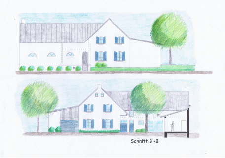Der Bauherr hatte ein altes Haus auf dem Land erworben, das mehrere Erweiterungen erfahren hatte, die aber alle nicht seinen Ansprüchen genügten. Er plant diese abzubrechen und durch einen neuen Anbau zu ersetzen