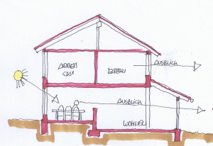 Der Bauherr hat ein Grundstück in der Eifel erworben mit einem Gefälle zum Garten hin. Außerdem hat die Straße, an der das Grundstück liegt ebenfalls Gefälle.