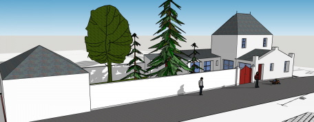 Planung für das Wohnen in der Vorstadt. Es ist als freistehendes Haus in der Stadt konzipiert.Wohnen in der Stadt, aber nicht im Stadthaus in der Reihe, sondern mit Freifläche rundherum. Deshalb steht dieses Haus auch nicht in der Innenstadt.